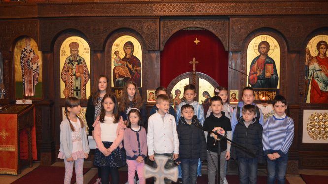 Молитвено расположење је започето празничном Литургијом те да би у вечерњим сатима доживело и свој циљ. А циљ је недвосмислено био да се тога дана у храму окупи што више школске и мале деце. Светосавски програм је почео вечерњим Богослужењем, после којег је настојатељ храма, прота Драган Мићић поздравио присутне пригодном беседом. У свом обраћању, […]