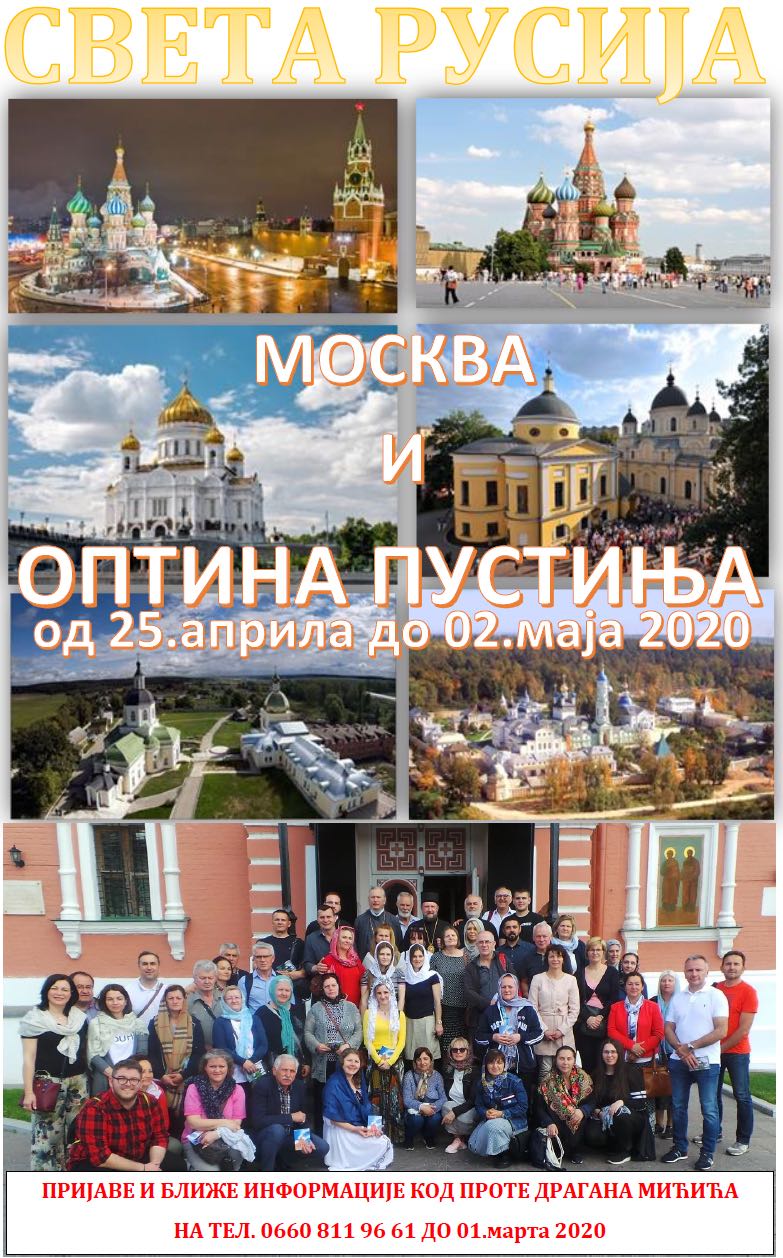Ходочашће – Света Русија 2020. 3. фебруар 2020 Ходочашће у Свету Русију са крстоносним протом Драганом Мићићем крајем априла 2020. Пријаве и информације на телефон: 0660 8119661 код Проте Драгана Мићића Ознаке See more Прослава Св. Саве Сви чланци Архијерејска литургија у Линцу, на Сретење, 15. фебруара 2020.