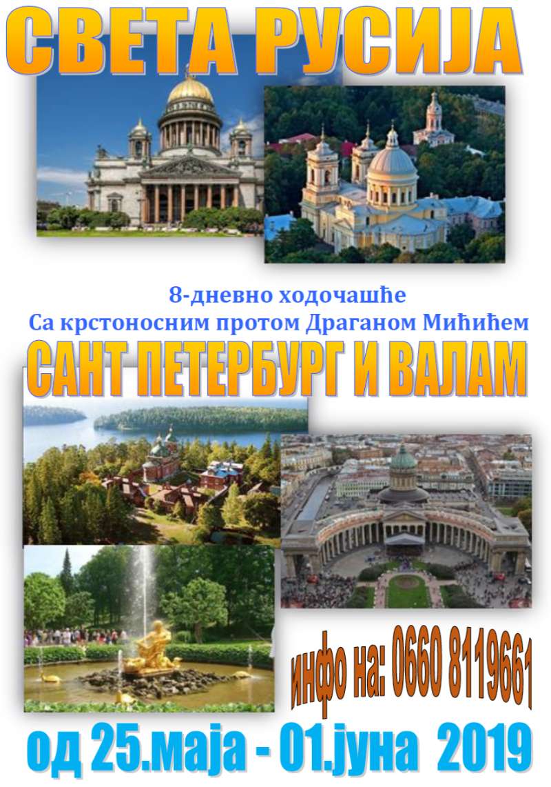Осмодневно ходочашће у Свету Русију са крстоносним протом Драганом Мићићем од 25. маја до 1. јуна 2019.