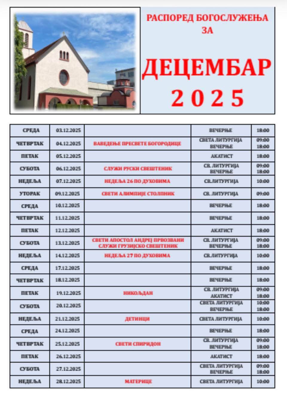 Sie sind hier: Home › Распоред Богослужења за Децембар 2025