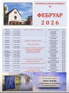 Распоред Богослужења за Фебруар 9. фебруар 2026 Ознаке See more Распоред Богослужења за Децембар 2025 Сви чланци Промоција Књиге