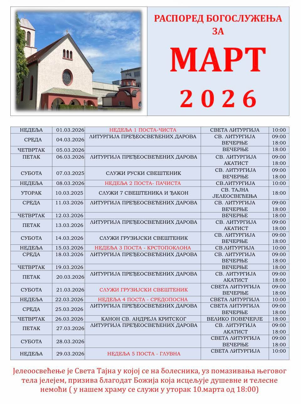 Распоред Богослужења за Март 27. фебруар 2026 Ознаке See more ПРАВОСЛАВАЦ Сви чланци Распоред Богослужења за Април