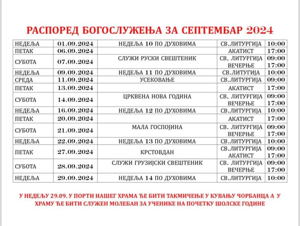 Распоред Богослужења за Септембар 2024 31. август 2024 Ознаке See more Распоред Богослужења за Aвгуст 2024 Сви чланци СПЦ Линц организује